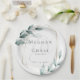 Placa de papel boda | Jade verde gris botánico - variaciones de verde jade gris - hojas verde jade silenciadas rodean el marco dorado estilo terrario. Fresco y sencillo, pero deliciosamente elegante. Esto forma parte de una colección de suites boda coordinada de diseño diseñada por BarefootBride™. Presenta un sencillo estilo de texto clásico (que puede cambiarse si le gusta hacer clic en Personalizar esta plantilla y, a continuación, en la lista desplegable, haga clic en el personalizar más adelante, aquí puede cambiar el tipo de letra y los colores del texto)
