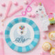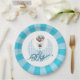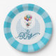Celebra a un chico de recién nacido con este plato de papel azul y blanco que orgullosamente muestra las palabras "¡Es un chico!"