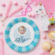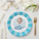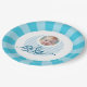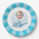 Celebra a un chico de recién nacido con este plato de papel azul y blanco que orgullosamente muestra las palabras "¡Es un chico!"
