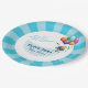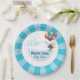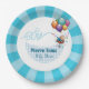 Celebra a un chico de recién nacido con este plato de papel azul y blanco que orgullosamente muestra las palabras "¡Es un chico!"