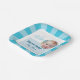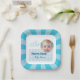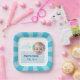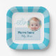 Celebra a un chico de recién nacido con este plato de papel azul y blanco que orgullosamente muestra las palabras "¡Es un chico!"