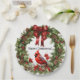 Este Cardenal de Navidades festivos es perfecto para sus comidas y tratamientos de vacaciones. Cuenta con una bella corona de frambuesa de Holly que está adornada con un cardenal. El Verse dice: "¡Feliz Navidad!" Personalice esta Placa de papel rojo para pájaros en su contenido cardiaco!
