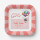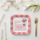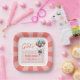 Adorable placa de papel rosa y blanco personalizada con el nombre de una niña, perfecta para una memorable ducha de bebé.