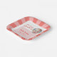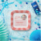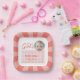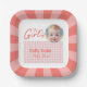 Adorable placa de papel rosa y blanco personalizada con el nombre de una niña, perfecta para una memorable ducha de bebé.