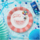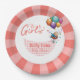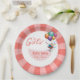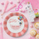 Adorable placa de papel rosa y blanco personalizada con el nombre de una niña, perfecta para una memorable ducha de bebé.