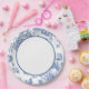 Elegante plato de papel azul y blanco para la abuela costera, el chinoiserie o el boda o fiesta de temática azul y blanca.