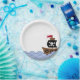 Esto es una placa de papel festiva para sus fiestas. Ofrece una navegación del barco pirata en ondas azules y del blanco.