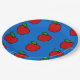 Esta placa de papel con las manzanas rojas en azul es perfecta para la fiesta de cumpleaños o cualquier acontecimiento especial de la diversión.