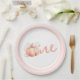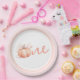 Este elegante y encantador plato de papel de primer cumpleaños presenta un hermoso ilustracion acuático de una calabaza con una delicada cinta rosa, perfecto para celebrar el primer hito de su pequeña.