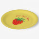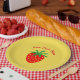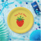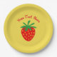 Placa de papel de encargo del fiesta con diseño rojo de la fresa. Accesorios lindos del fiesta con la impresión con sabor a fruta. Verde amarillo y colores rojos. Añada su propio texto personalizado. Grande para los niños cumpleaños, el boda, el fiesta de cena etc. disponibles en diversos tamaños para servir la torta hecha en casa, dulces, comida de los pasteles, postres y más.