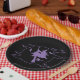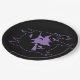 Placa de papel fiesta mostrada en una huella de bruja de Halloween.