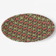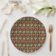 Una placa de papel de moda, con un patrón de motivos tradicionales de flecha egipcia en rojo, verde y amarillo dorado, delineado en negro. Este patrón, que forma parte de la colección "egipcia" de Posh y Painterly, se puede ajustar fácilmente para que se ajuste a cualquier placa de papel.