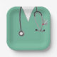 Platos únicos de fiesta de grado de enfermería con exfoliaciones de enfermería y un ilustracion estetoscopio.