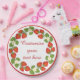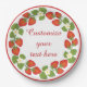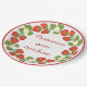 Este plato de papel está pintado en rojo, verde, blanco y amarillo. El plato está diseñado con guirnalda de fresa, ideal para cualquier celebración fiesta. También puede personalizar del texto.