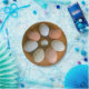 Este plato de papel presenta huevos de diferentes colores en un diseño floral. Ideal para fiestas y picnics.