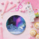 Ya sea que estés haciendo senderismo por las montañas de Alaska para ver las auroras boreales, acampando cerca de un lago helado en Islandia, o quedándote en casa deseando ver las auroras en persona, esta pintura digital del mágico show de luces seguro que será un paro.