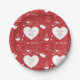 Placa de papel diseñada con un patrón de valentina de dos nombres, blanco sobre rojo, versión pequeña. Personalizar el plato de papel con sus nombres de corazón, color de fondo, entre otras opciones.