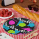 Este diseño geométrico de pintura con salpicaduras de neón te lleva hasta los años 80.