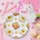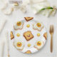 Un plato de papel con huevos fritos y tostadas kawaii.