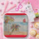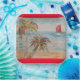 Velas rojas, navegando en el océano azul en medio de extravagantes palmeras coloridas, creadas como una obra de arte mixta.