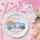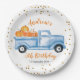 placa de papel de cumpleaños del camión de calabaza azul otoño