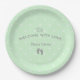Personalice esta placa punteada y verde de la polca para un fiesta agradable del bebé.