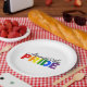 Abundante diseño de placas de papel orgullo en la tipografía moderna que dice "ABUNDANTEMENTE ORGULLO" en un diseño minimalista simple pero limpio. Diseño sencillo en colores de arcoiris del Orgullo que funciona muy bien para cualquiera.