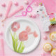 Plato De Papel Placa de papel Flor de tulipano rosa retro