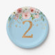Plato De Papel Placa de papel Floral Blue Boy de segundo cumpleañ