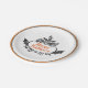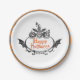 Placas de papel con temática de Halloween hechas en blanco, con un anillo gris y naranja alrededor del borde exterior y acuarela de tres calabazas negras espeluznantes decorando un área de texto ovalada. El texto del personalizado naranja lee Feliz Halloween y se puede cambiar para leer lo que quieras. Se ofrecen servilletas y tazas de papel y otros artículos de fiesta.