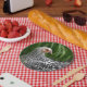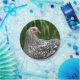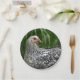 Este plato de papel presenta una gallina de wyandotte lacada de plata posando con hierbas altas en el fondo. ¡Genial para fiestas y picnics!