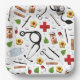Platos creativos para la fiesta de graduación de enfermeras con suministros de enfermería y motivos florales.