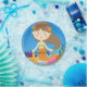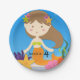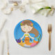 ¡Las placas de papel personalizadas del cumpleaños trigueno de la sirena ofrecen una sirena bonita con el pelo marrón adornado con las estrellas de mar coloridas, la cola anaranjada de la sirena, las estrellas de mar, la mala hierba del mar, el océano azul, y un área que usted puede personalizar con el nombre y la edad del chica del cumpleaños!