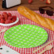 Los puntos verdes cubren el plato. Los puntos verdes tridimensionales se replican varias veces contra un fondo verde pálido. ***Parte del conjunto coordinado - BKM1T.