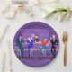 El diseño de la placa de papel Retro Gay Bar es morado, kitsch y absolutamente fabuloso. Sentados en taburetes modernos de mediados de siglo, bebiendo sus divertidas bebidas rosadas, estos señores dapper están teniendo un buen momento gay. El incómodo barman con una corbata rosada ya está lloviendo en la siguiente ronda. Las siluetas de botellas de licor atómico alinean la pared y la lámpara de araña de estilo sputnik de los años 1960 está colgada a un lado. Lo único que hay en este bar es el bar.