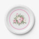 Placa de papel fiesta mostrada en blanco con una bonita impresión de rosas rosas rosas. Personalizar este plato o compra como está.