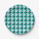 Diseño de placa de papel con patrones geométricos verde azulados.