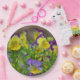 Este plato de papel presenta hermosas violas o panes. Ideal para fiestas, picnics, bodas y duchas.