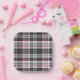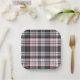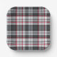 Funda tartán de textura gris con rayas finas rojas y azules.