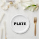 Platos perfectos para tu fiesta de temática genérica de moda. Todas las emociones no tienen nada de extraordinario. Sólo la palabra PLATE en texto negro plano.
