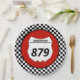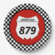 Portón trasero con estilo en su próxima carrera de motocross con platos personalizados. Estos platos tienen un número de placa blanco que está listo para ser personalizado con su nombre y número de bicicleta. La placa numérica se coloca sobre un fondo rojo con un borde de bandera a cuadros en blanco y negro.