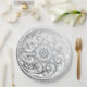 Placa Ornamental de efecto Blanco y Plata Etrusca Romana. Un magnífico y elegante diseño circular para las duchas de novias, los compromisos o los fiestas de estilo europeo. El gradiente gris oscuro a gris oscuro de tono medio a blanco crea un efecto plateado. Hay una calidad de ensueño en la forma en que el patrón se desvanece en el plato blanco.