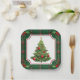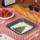 Un hermoso plato de papel para Navidades con un colorido árbol de Navidad con un borde de yeso verde para Navidades y acentos holgados. Ideal para las mesas de los restaurantes de vacaciones o para la comida de las barrozas de vacaciones.