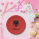Placas de papel con la imagen del doble águila albanesa sobre fondo rojo