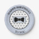 Plato De Papel Placas azules del bigote del feliz cumpleaños y de