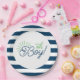 Plato De Papel Placas Baby Shower a rayas blancas y navales