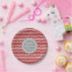 Placas adaptables del fiesta de fiesta de bienvenida al bebé del nombre y de la fecha en la diversión y modelo retro elegante del rojo, del gris de carbón de leña y blanco del galón del zigzag de las rayas.