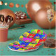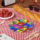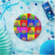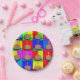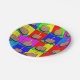 Platos de cumpleaños con el colorido diseño de pasteles de Pop Art.