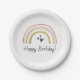 Celebra su cumpleaños con este plato de papel de arco iris personalizado.