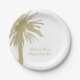 Placas fiestas de papel casero de moda personalizada con diseño exótico de palmeras. Colores de tono neutro. Platos de papel de moda para destinos tropicales o matrimonios de verano. Elegante diseño de plantilla con una hermosa silueta de hojas exóticas de palmeras. Accesorios para el matrimonio personalizado y artículos de fiesta desechables para parejas de novios y novios elegantes. Añada sus propios nombres/cartas monográficas y fecha de matrimonio. Diseño de lujo. paleta de color de personalizable para que coincida con el tema. Parte de la colección náutica/costera de moda. Cambiar la cantidad por precios a granel baratos. Para los lugares populares de las islas de los sueños de luna de miel para casarse como Hawaii, Caribe, Antigua, Bahamas, Bermudas, Jamaica, Islas Vírgenes, Puerto Rico.